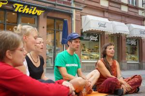 Acro-Yoga-Aktion in der Innenstadt